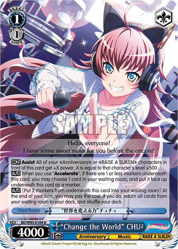 [CONT] Assist All of your "Anniversary" or "RAISE A SUILEN" characters in front of this card get +X power. X is equal to that character's level ×500.
