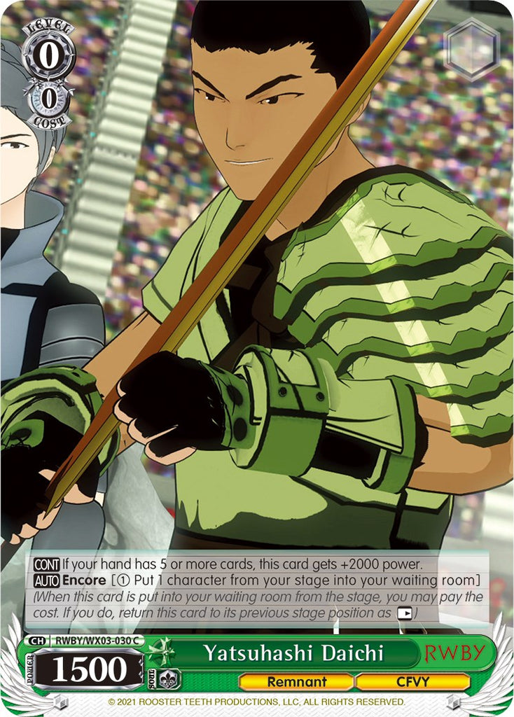 [CONT] If your hand has 5 or more cards, this card gets +2000 power. [AUTO] Encore [(1) Put 1 character from your stage into your waiting room] (When this card is put into your waiting room from the stage, you may pay the cost. If you do, return this card to its previous stage position as [REST])